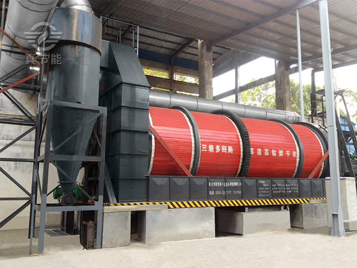 廢熱利用三級(jí)多回路烘干機(jī)(專(zhuān)利號(hào)2011200498127)是由真節(jié)能環(huán)保設(shè)備自主研發(fā)的國(guó)家專(zhuān)利技術(shù)。該工藝可以利用企業(yè)現(xiàn)有的鍋爐煙氣廢熱做為熱源,一般用于對(duì)高濕高粘工業(yè)固(危)廢污泥進(jìn)行干燥作業(yè)。充分利用了企業(yè)的廢熱資源變廢為寶,從而大大降低了烘干機(jī)的用熱成本。而且在對(duì)工業(yè)固(危)廢污泥進(jìn)行干燥時(shí),煙氣中的粉塵會(huì)被高濕污泥所吸附,部分有害氣體也可以與堿性污泥產(chǎn)生化學(xué)反應(yīng)而被去除。這樣,既利用了鍋爐煙氣廢熱,又間接處理了粉塵和有害氣體,讓企業(yè)有效實(shí)現(xiàn)了“吃干榨盡”,一舉多得,節(jié)能效果顯著。